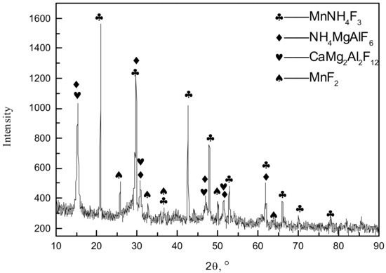 After purification, the concentrations of Ca, Mg and Al decreased to 33.0, 79.0 and 9.00 mg·L−1 respectively, and only the concentration of Mn increased, which was caused by the reactions between MnNH4F3 and Ca2+ and Mg2+ during the purification process.