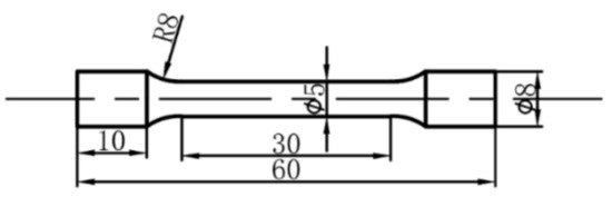 The samples for microstructural observation were taken from the middle position of the ingots, and then polished and etched by 0.5% HF. The microstructure was observed by optical microscope (OM) using a DMM-490C (CAIKON, Shanghai, China), scanning electron microscope (SEM) using a JEOL-7600F (JEOL, Tokyo, Japan), electron probe microanalysis (EMPA) using a EPMA-8050G (SHIMADZU, Tokyo, Japan), and X-ray diffraction (Philips X’ pert, Almelo, The Netherlands) with a copper target at a scanning speed of 10°/min from 20° to 80°. The tensile mechanical properties were tested by AG-IC100KN universal material testing machine (SHIMADZU, Tokyo, Japan), with the clamping speed of 1.0 mm/min, and the sample size is shown in Figure 1.