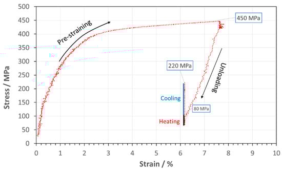 Stress–strain curve of the SMA alloy showing the effect of the pre-straining and the activation process.
