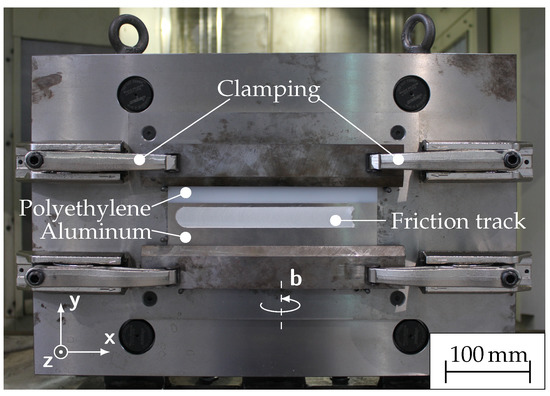 Customized clamping system for joining aluminum and thermoplastic material (in this case polyethylene) by friction press joining [11].