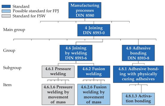 - DIN 8593-0:2003-09, Manufacturing Processes Joining—Part 0: General: Classification, Subdivision, Terms and Definitions; Beuth Verlag GmbH: Berlin, Cermany, 2003. [CrossRef]