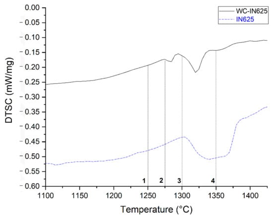 Figure 1 shows the DTSC curves of the IN625 powder and on the 70 wt.% WC–30 wt.% IN625 mix.