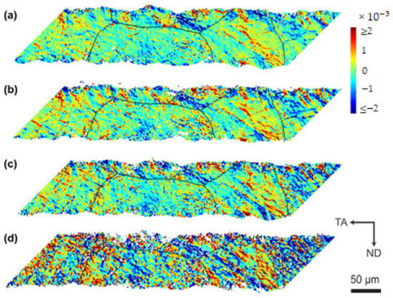 3.4. Lattice Strains Along ND in Ti