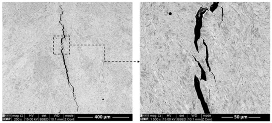 SEM images of cracks formed in the M2_6_15 sample with PHT.