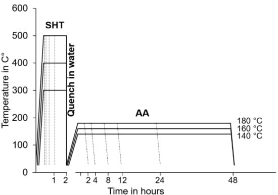 Schematic representation of the heat-treatment parametric study for both SHT and AA stages.