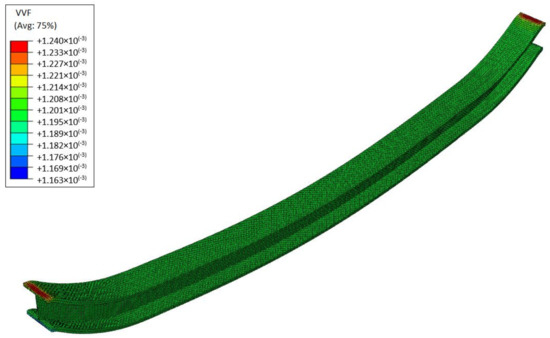 Void volume fraction map for the steel beam at the end of the deformation process.