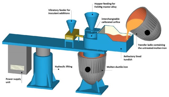 - Bakkerus, H.; van DER, H.B. Dutch develop vortex process for ductile iron treatment. Mod. Cast. 1981, 71, 41–44. [Google Scholar]