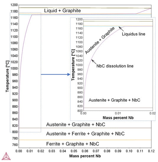 Nb-based equilibrium diagram calculated using Thermo-Calc software of the studied ductile irons.