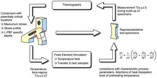 Finally, thermography can be used to validate this approach by comparing the surface temperatures during build-up of the specimens and the component. It is clear that such an approach will not be applicable for arbitrary geometries. In particular, the transfer of a temperature field of small, narrow features to a larger sample is subject to restrictions. However, this promising approach is the subject of ongoing research activities.
