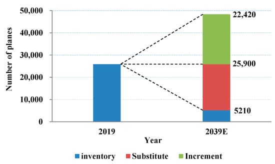 Influenced by COVID-19 in 2020, the global air passenger traffic has reduced, but the average annual growth of global air passenger traffic will reach 4.0% in 20 years based on Boeing’s Report. 22,420 additional passenger and cargo aircrafts will be increased, while the total number of aircraft is expected to come up to more than double between 2019 and 2039 according to Boeing’s forecast, which is demonstrated in Figure 1. In addition, approximately 20,690 low-fuel-efficient passenger and cargo aircrafts will be replaced by new [6,7]. The rapid development of the aviation industry contributes to the progress of new materials. Although the proportion of titanium alloys and composite materials has increased in newly developed aircraft, the use of high-strength aluminum alloys still accounts for a large proportion, which makes it indispensable in the aerospace field [8].