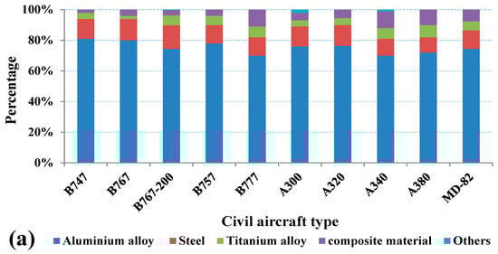 Ratio of materials used in Aircrafts: (a) civil (b) military [9].