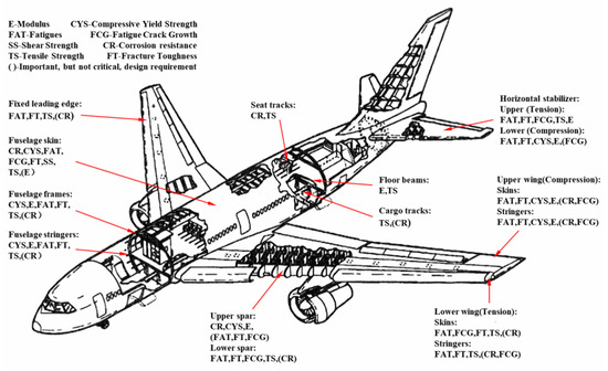 Performance requirements of the aircraft materials [25,35,38,39]. (Adapted with permission from ref. [35]. Copyright 1996 Elsevier).
