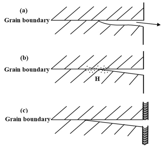 Illustration of mechanisms of SCC for aluminum alloys. (a) Anodic dissolution assisted cracking; (b) Hydrogen induced cracking; (c) Passive film rupture. (Reprinted with permission from ref. [65]. Copyright 2016 Elsevier).