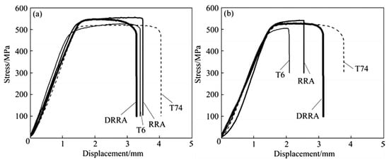 - Peng, G.; Chen, K.; Chen, S.; Fang, H. Influence of repetitious-RRA treatment on the strength and SCC resistance of Al–Zn–Mg–Cu alloy. Mater. Sci. Eng. A 2011, 528, 4014–4018. [Google Scholar] [CrossRef]
