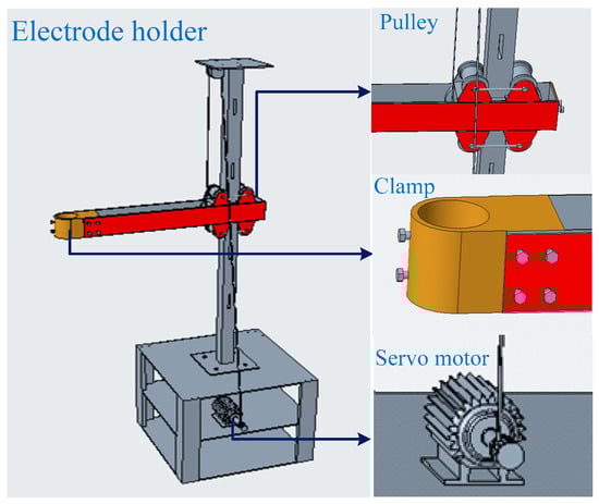 The electrode holders are used to hold the electrodes and provide a pathway for current flow. Therefore, red copper material was chosen owing to its good electric conductivity. A 3D drawing of the holder is illustrated in Figure 2.