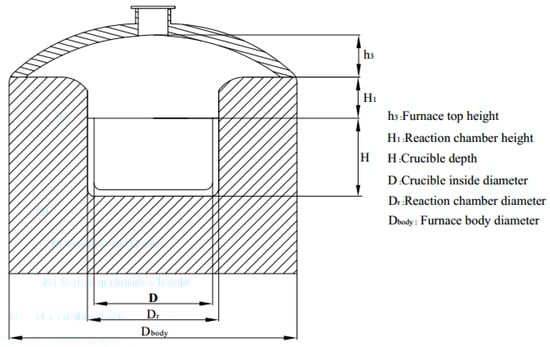 The height of the reaction chamber (H1) and the height of the furnace top (h3) are usually determined from the heat exchange in the furnace [], as shown in Equations (5) and (6):