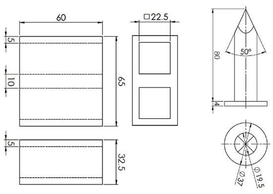 Drawing of the test casting (mm) (3D, Rhinoceros 6).