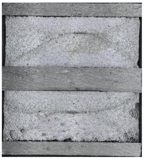 The test casting (Figure 3) weighing 196 g (gross weight 401 g) with an average wall thickness of 5.0 mm and dimensions of 32.5 mm × 65 mm × 60 mm was designed to simulate the production of thin-walled castings with relatively massive cores, in which insufficient core heating occurs, and thus the thermal destruction of core mixtures with organic binders is considerably limited. The low heating of the cores is then the reason for the deteriorated cleanability of the castings, respectively impaired collapsibility of mixtures with organic binders. In this study, the low thermal stress of the cores was ensured by a low core/cast weight ratio of about 1:2. In addition, it is necessary to take into account the change of stress states at the core/metal interface and the increase of the internal stress in the core, which results in the “clamping” of the core by the shrinking casting.