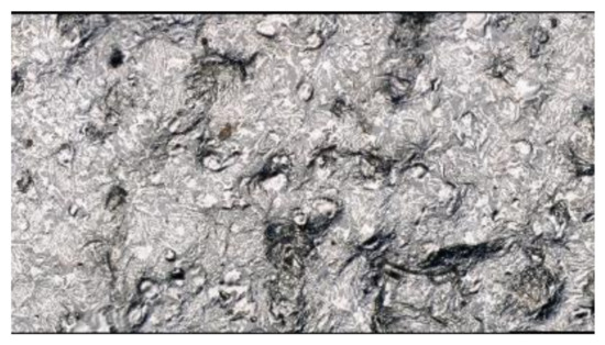 The surface quality of test castings around cores from mixtures with studied binders was evaluated visually in the form of surface photographs at 10× and 500× magnification and using mean arithmetic roughness Ra and the maximum peak to valley height of profile Rz determined from ten points in accordance with the Czech standard ČSN EN ISO 4287. The upper half of the casting was always evaluated. The reason was the effort to evaluate not only potential surface defects from the core, but also gas defects, which generally appear in the upper parts of the castings. The actual measured values of surface roughness of test castings are summarized in Table 4. The stated values of Ra and Rz are expressed as the average value from five measurements over the entire monitored area of the test casting.