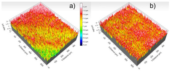 The roughness profile for each oxide layer was investigated by optical interferometry, and the 3D topography profiles are shown in Figure 4. From this image it is possible to determine the main roughness parameters, such as arithmetic mean height (Sa) and maximum height (Sz), as well as other parameters that are described and summarized in Table 2. From this observation, it is possible to conclude that the oxide layer does not grow homogeneously due to the presence of several nodules.