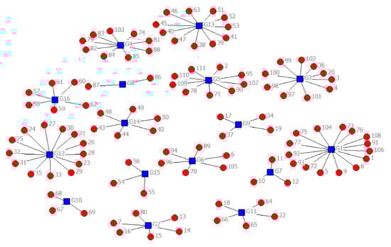 In particular, the first step of block-modeling is to partition the actors, that is, to divide them into different groups based on methods of clustering and scaling. In particular, the Convergent Correlation (CONCOR) procedure is a method of hierarchical clustering for relational data which begins by forming a new square matrix of product–moment correlations between the columns (or rows) of the original data and is found to give results that are highly compatible with analyses and interpretations of the same data using the block-modeling approach [34]. CONCOR is an iterative convergence algorithm, which measures the network structure by repeatedly calculating the correlation matrix. Each iteration of CONCOR contains a hierarchical clustering to achieve partition. According to the correlation matrix between nodes, the data set is divided into different levels and can obtain the tree clustering structure. CONCOR is an iterative convergence algorithm, which measures the network structure by repeatedly calculating the correlation matrix. Each iteration of CONCOR contains a hierarchical clustering to achieve partitions.