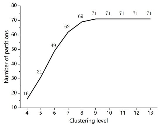 The corresponding relation between the clustering level and the number of partitions.