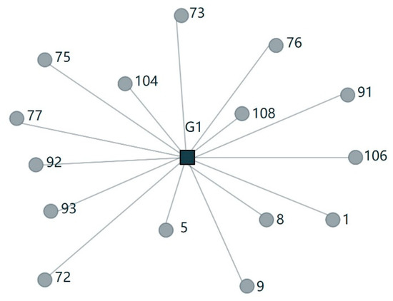 Finally, the feature selection is based on the partition situation and the feature evaluation results. At different clustering levels, compare the centrality and influence rankings of different features in each partition. The top 1 feature is selected as the representative of the partition, also as a member of the selected feature subset. For example, when the clustering level is 4, 111 features are divided into 16 subgroups. The feature distribution of the first subgroup is shown in Figure 7.