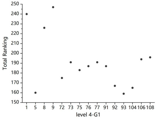 There are 15 features in subgroup , and Figure 8 shows the total ranking scatter diagram of each feature. It can be seen that the ranking distribution within the subgroup is relatively concentrated among [150, 200], which also verifies the rationality of clustering, that is, the rankings of similar features should also be similar. Among them, the top ranking is feature 93 whose total ranking is 159, so select feature 93 as the representative feature of subgroup and add it into the final feature subset.