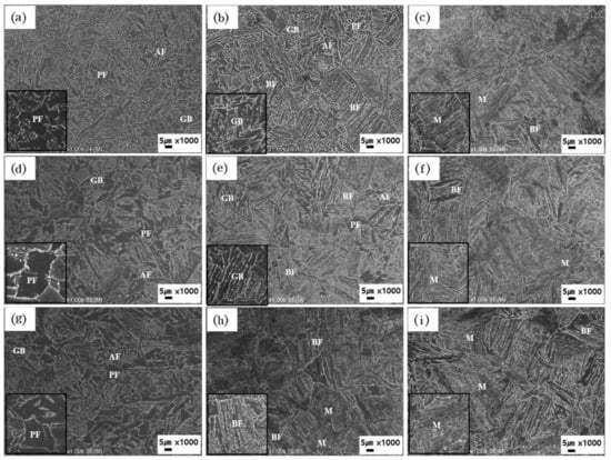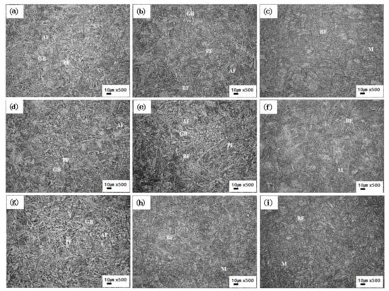3.1. Microstructure Analysis of Hot Forged F70 High-Strength Steels