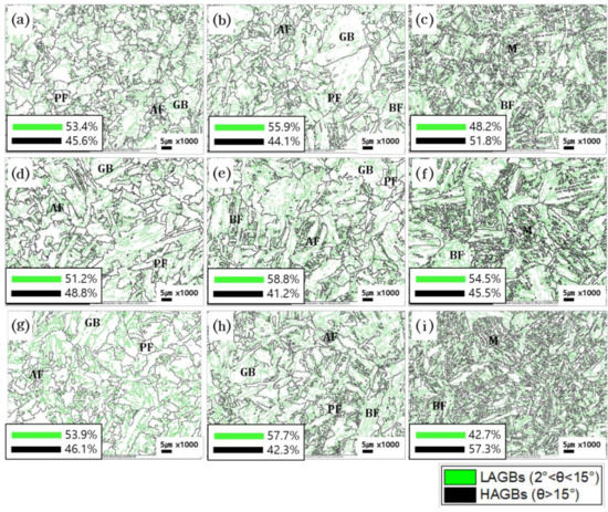 - Kang, J.S.; Seol, J.-B.; Park, C. Three-dimensional characterization of bainitic microstructures in low-carbon high-strength low-alloy steel studied by electron backscatter diffraction. Mater. Charact. 2013, 79, 110–121. [Google Scholar] [CrossRef]