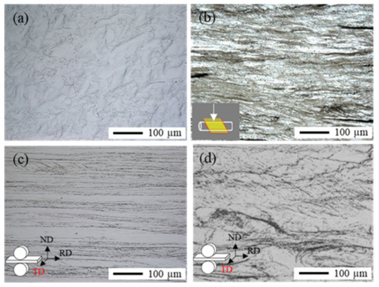 - Ciemiorek, M.; Chrominski, W.; Olejnik, L.; Lewandowska, M. Evaluation of mechanical properties and anisotropy of ultra-fine grained 1050 aluminum sheets produced by incremental ECAP. Mater. Des. 2017, 130, 392–402. [Google Scholar] [CrossRef]