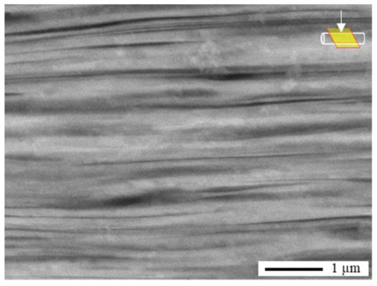 BSE image depicting the microstructure of the ECAPed specimen after 2nd drawing measured in the radial direction.