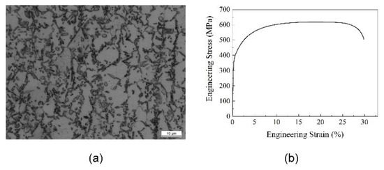 The microstructure and tensile curve of raw material: (a) microstructure, (b) tensile curve.