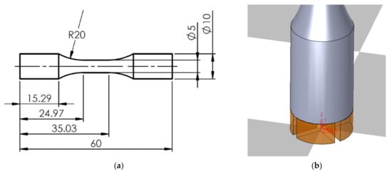 (a) Shape and dimensions (mm) of L-PBF specimens of prints 1, 2 and 3; (b) Graphical representation of the support structure.