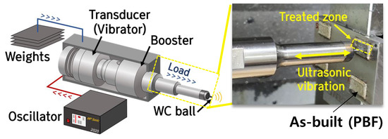 Owing to these benefits of UNSM, studies have been conducted on the surface treatment of additively manufactured materials using UNSM. Ye et al. proposed an innovative method, electrically-assisted ultrasonic nanocrystal surface modification (EA-UNSM), to process additively built Ti-6Al-4V samples. They investigated the effect of EA-UNSM on surface finish, microstructure, porosity and in-depth hardness [20]. Shim et al. investigated the changes in the metallurgical and mechanical properties induced by UNSM treatment in M4 built by directed energy deposition [21]. Cho et al. investigated the effects of ultrasonic nanocrystal surface modification (UNSM) treatment at room and high temperatures (RT and HT of 400 °C) on friction and wear behavior of Ti-6Al-4V alloy prepared by selective laser melting [22]. Amanov [23] tailored a Co–Cr–Mo alloy prepared by the AM method to contain both the gradient nanostructure and harmonic structure by UNSM at 25 and 500 °C, respectively. These previous studies reported that the wear and fatigue resistances of additively manufactured material surfaces were improved by UNSM treatment.