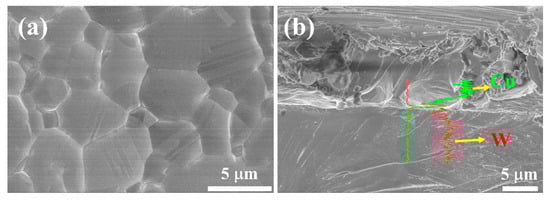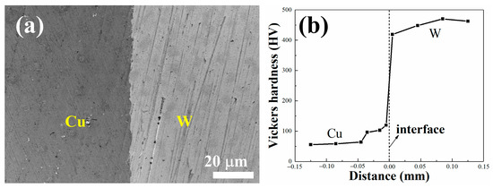 - Yan, H.; Fan, J.; Han, Y.; Yao, Q.; Liu, T.; Lv, Y.; Zhang, C. Vacuum Diffusion Bonding W to W-Cu Composite: Interfacial Microstructure and Mechanical Properties. Vacuum 2019, 165, 19–25. [Google Scholar] [CrossRef]