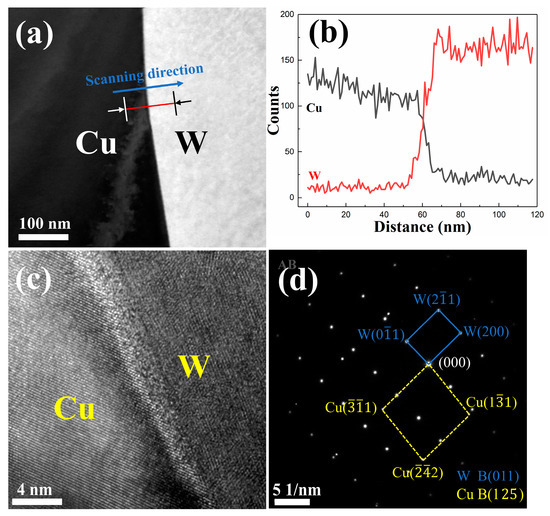 - Zhang, J.; Huang, Y.; Liu, Y.; Wang, Z. Direct Diffusion Bonding of Immiscible Tungsten and Copper at Temperature Close to Copper’s Melting Point. Mater. Des. 2018, 137, 473–480. [Google Scholar] [CrossRef]