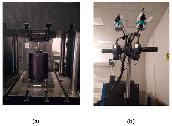 (a) Experimental set-up of LDH (Limiting Dome Height) test and (b) ARAMIS DIC (Digital Image Correlation) test system.