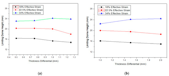 Limiting Dome Height VS Thickness Differential with fixed thickness ratio (a) TR = 1.5; (b) TR = 2.