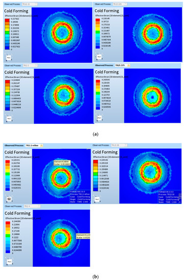 Based on the results for maximum deformation before fracture presented in Figure 3, and industrial strain limits set to prevent material thinning in room-temperature stamping of aluminum TWBs, three equivalent plastic strains were investigated that are representative a different fracture levels that may be sustained in the AA5754. This equivalent plastic strain limits are 18%, 22.5% and 34%, respectively.