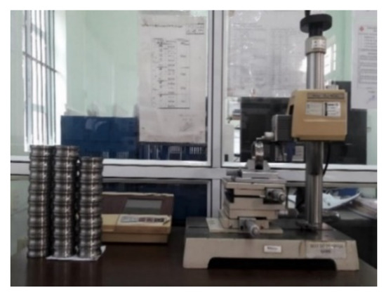 - The fourth step: determining the value of the material removal rate (MRR) after each test. The value of the material removal rate (MRR) was determined by Equation (2) [26,27].where: