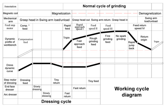 Working cycle diagram of 3MK136B bearing raceway grinder.