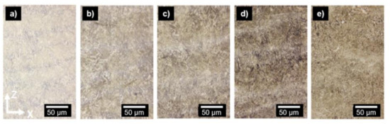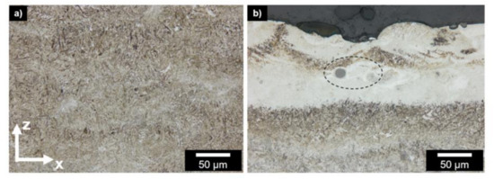 The microstructure in the as-built state after the PBF-LB/M process is shown in Figure 1.