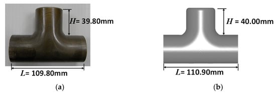 Comparison between the final shape and dimensions of T-shape formed products. (a) Experiment; (b) FE analysis.