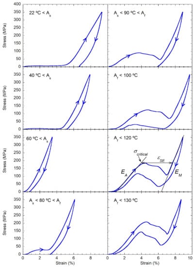 - L’vov, V.A.; Rudenko, A.A.; Chernenko, V.A.; Cesari, E.; Pons, J.; Kanomata, T. Stress-induced martensitic transformation and superelasticity of alloys: Experiment and theory. Mater. Trans. 2005, 46, 790–797. [Google Scholar] [CrossRef]