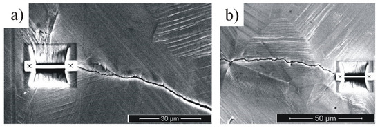 Transmission electron microscopy (TEM) samples were prepared using the focused Ga ion beam of a Dual Beam Microscope of type Helius Nanolab 600. Samples were cut from the areas ahead of the crack tip of fatigue cracks (see Figure 2). Before the foils were lifted out, they were polished with an ion beam energy of 2 kV.
