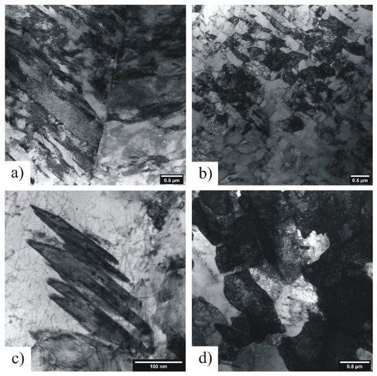 TEM bright-field images of X2-9: (a,c) In the reference condition and (b,d) in the precharged condition.