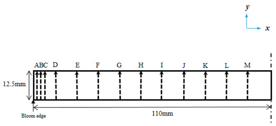 - Miyazawa, K.; Schwerdtfeger, K. Macrosegregation in continuously cast steel slabs: Preliminary theoretical investigation on the effect of steady state bulging. Archiv für das Eisenhüttenwesen 1981, 52, 415–422. [Google Scholar] [CrossRef]
