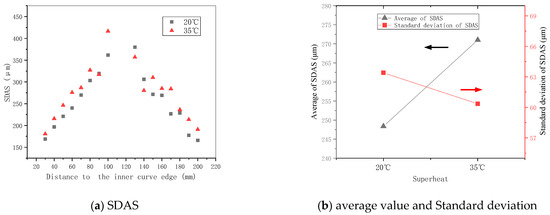 - Calculated results show that the velocity magnitude decreases from continuous casting bloom margin toward the center as a whole, and it decreases in the central zone first, then shows an increasing trend, and decreases again finally, which is in correspondence with segregation morphology. Besides the chilled zone, the velocity magnitude of the interdendritic fluid flow in the inner curve side is higher than that in the outer curve side. The velocity magnitude and related fluctuation is higher under 20 °C. Moreover, it is indicated that the fluctuation extent of SDAS is more relevant with interdendritic fluid flow, although the SDAS magnitude is mainly determined by the cooling rate.