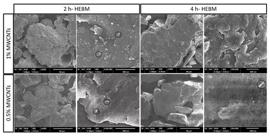 - Choi, H.; Shin, J.; Bae, D. The effect of milling conditions on microstructures and mechanical properties of Al/MWCNT composites. Compos. Part A Appl. Sci. Manuf. 2012, 43, 1061–1072. [Google Scholar] [CrossRef]
